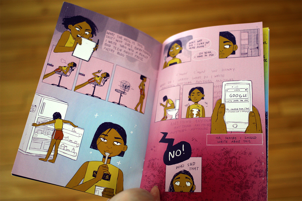 A full colored 12-page zine I started and finished in under 24 hours 'cause I was under pressure to meet a printing deadline before a zine convention I was tabling at lol. The zine is about creative block! If you'd rather, I have some physical printed and bound copies in my etsy shop.